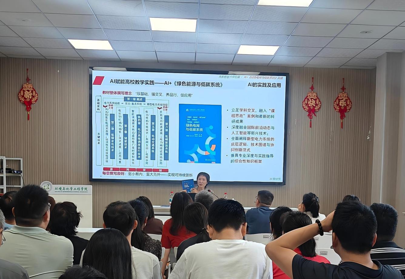 黄冬梅首先以亲身组织团队编写教材,并带领团队面向全校各专业开设《绿色能源与低碳系统》交叉融合课程的实践经验为例,分享了自己运用Canvas信息化教学管理工具进行AI赋能,充分实现教学资源整合、模块定制和数据实时交互的历程与感悟。随后,她通过一段精彩的“数字分身”表演,向在场的老师们展示了AI教学智能体和AI管理智能体在推动教学创新方面的巨大潜力,让大家深刻感受到“未来大学”能够借助场景感知、数据赋能、人机协同等手段,提供远程、开放、互动的新型教育模式,进一步构建一个“人人都是学习者,处处都是教育场”的无边界教育生态。在讲座尾声,黄冬梅寄语英国正版365中文官网教师紧抓时代机遇,竞逐未来智慧大学新赛道。