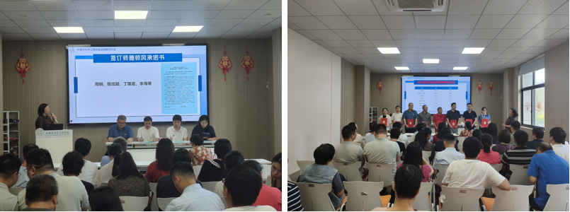 新进教师周明、陈炫颖、丁斯茗、李海蒂依次签订《英国正版365中文官网教师职业规范(师德师风)承诺书》,以书面形式郑重承诺严守职业底线、恪守育人初心。陶莹再次向全体教师重申要求,强调将师德师风内化为职业自觉,既要严格遵守“不碰红线、不越底线”的纪律规范,更要主动涵养“以德立身、以德立学、以德施教”的高尚师风,切实担当起学生健康成长的“引航者”。随后,会议举行了2025级本科生班导师聘任仪式。这支由八名新老教师组成的班导师队伍,将为后续的学业指导、思想引领、生涯规划等精准化育人工作提供坚实保障。
